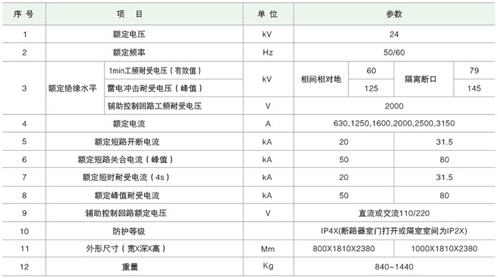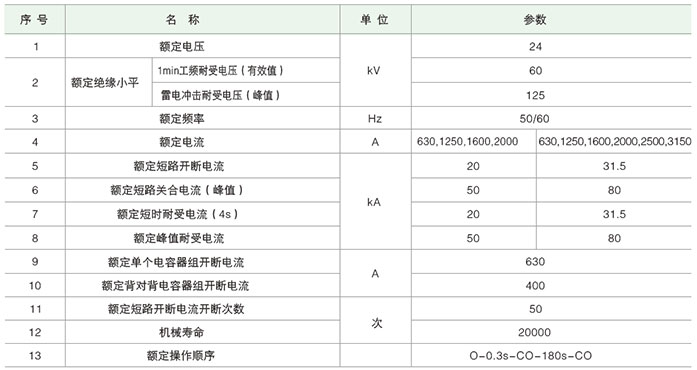 QCE1-24、VN2-24 真空断路器主要技术参数