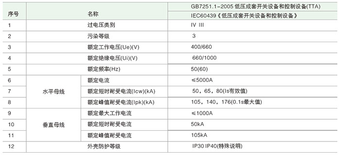 本开关柜适用于交流50(60)Hz、额定工作电压400V、660V,额定电流5000A及以下三相五线制的电力供电系统, 可用于发电厂、 变电所、 工矿企业、 大楼宾馆、机场、码头以及广播电视等通信中心,来作为发电、输配电、 电能转换及电能消耗设备的控制,并通过电容补偿柜对其主母线进行无功补偿。符合国标准:GB7251.1《低压成套开关设备》 IEC60439《低压成套开关设备和控制设备》